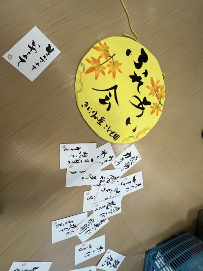 みなさんに控え室で,書をかき