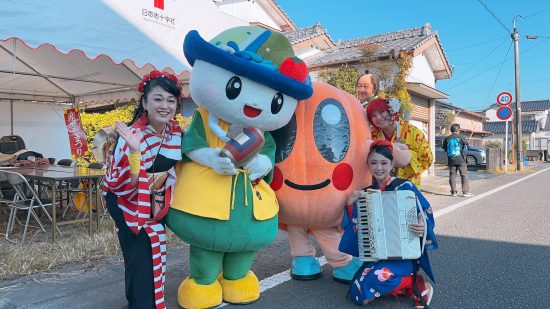 都農町の姉妹都市の北海道のさろまからゆるキャラが、そして、都農町のつのぴょんと撮影