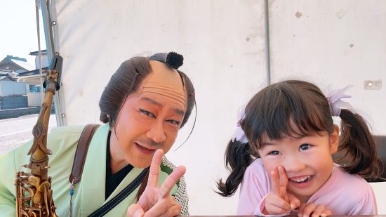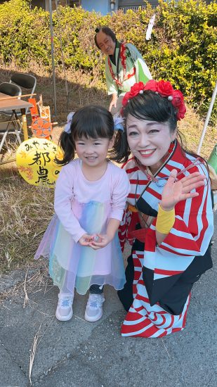 先週、宮崎市内でわたしたちをみた 4歳のMちゃんがこんなにうれしい表情でわたしたちを一日中おいかけてくれて、楽屋は大賑わいでした。