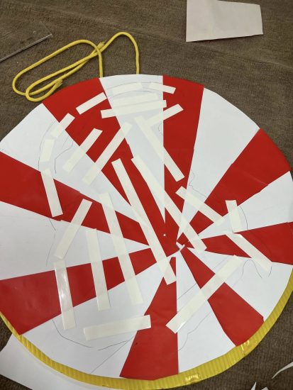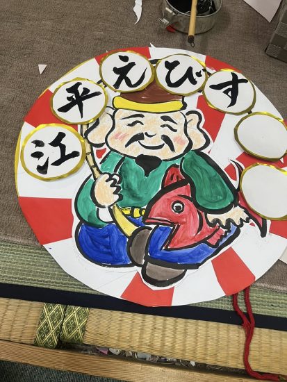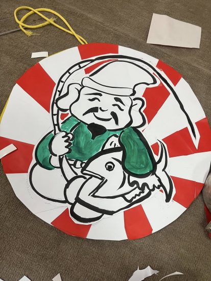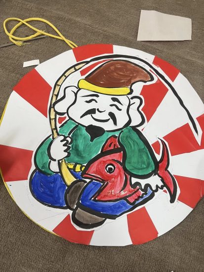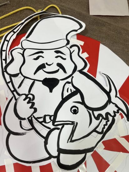 いつからかな?縁起物だし、私はちんどん屋だから宣伝をかねて手づくりの看板をつくっています。