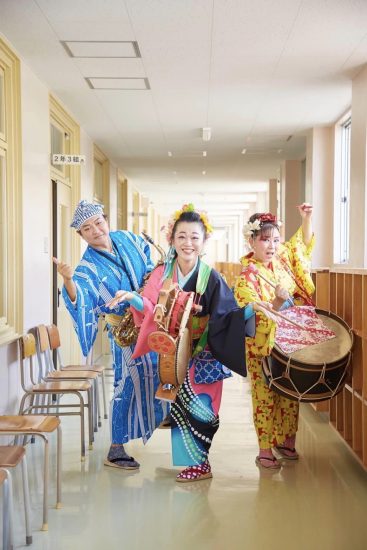 さてさて、先日、高鍋高校OB祭でチンドンを校内で練り歩いている風景の写真を撮っていただきました。