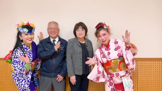 「高齢者交通安全講習会」の会場で、後半にチンドンの30分パフォーマンスショーをさせていただきました。