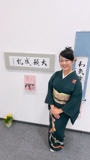 今年で11年目の書道教室の展示会の初日でした。毎年、初日に着物をきて、受付の手伝いをさせていただいています。