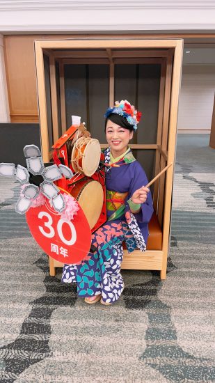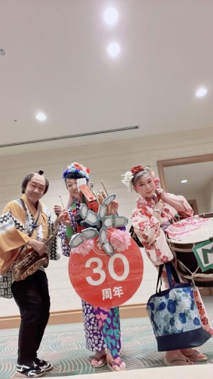 今日は久しぶりの宮崎市内のサミットホール2階での懇親会でのアトラクションを3名編成ちんどんでやらせていただきました。