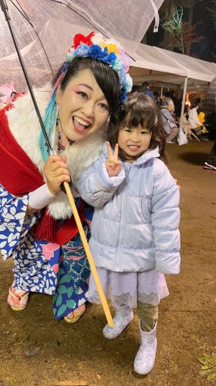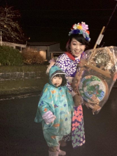 最後の最後のバス停までのお客様のお見送りちんどんも一緒に手をつないでいました。