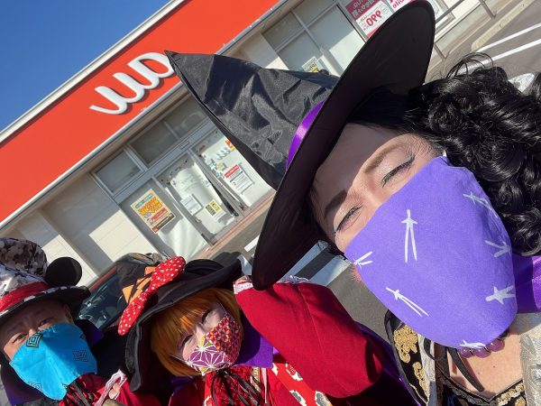 auショップ花繰、五十市のハロウィンイベントの街頭宣伝