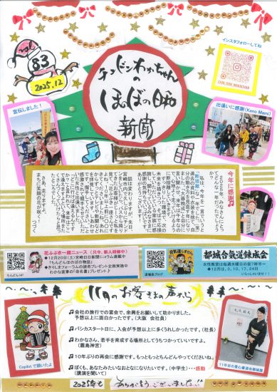 宮田わかな直筆のアナログ新聞。笑顔と元気を届けたいの一心で今も描き続けています。